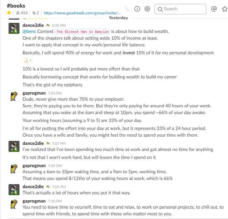 Here is the conversation on #books channel (posted with a permission from Jamie)
