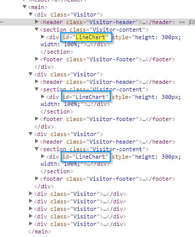 Here you see that each chart had the same id="LineChart".