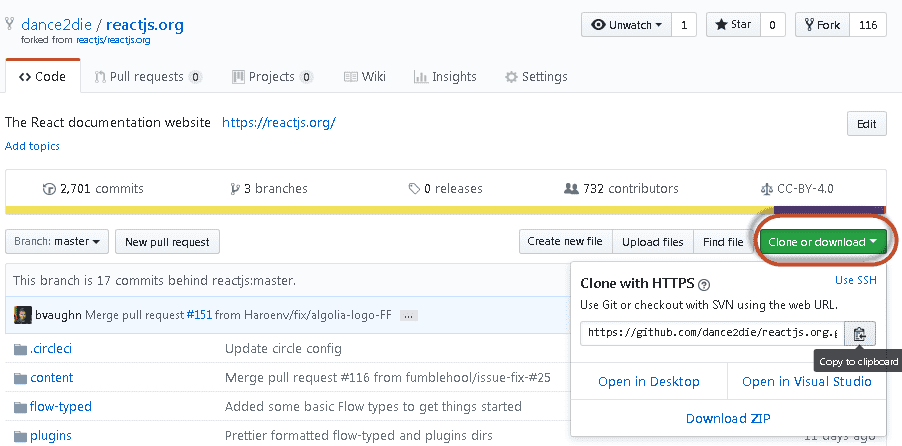- Create a fork of ReactJS.org on GitHub.