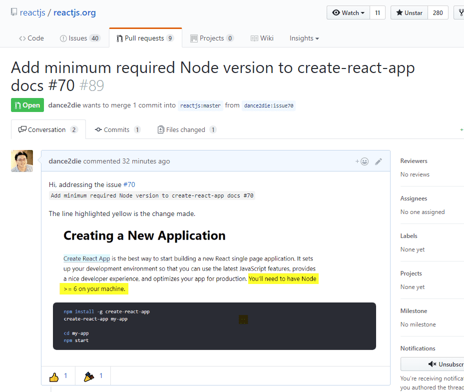 I wanted to contribute to ReactJS.org website, (which is a new React JS documentation site announced on Twitter.) as a happy new React user.