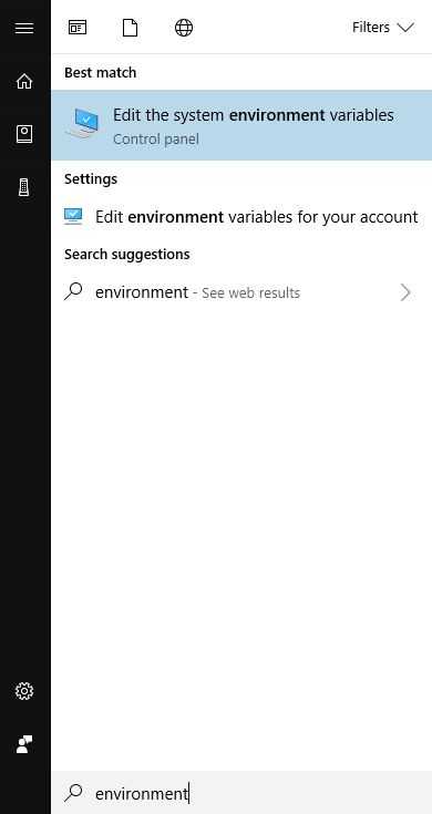 Click on Windows button then search with "environment" and click on "Edit the system environment variables".