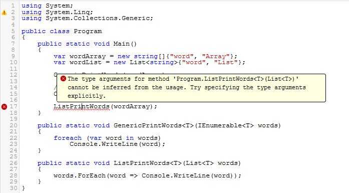 If you were to pass wordArray to ListPrintWords, it will fail to compile while GenericPrintWords is happy to work with it.
