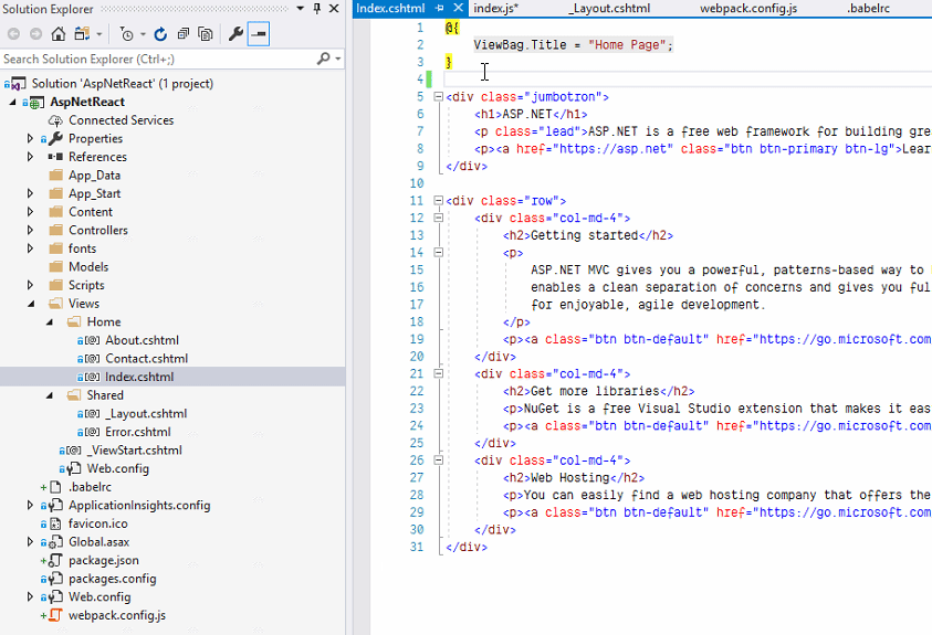 As I have moved onto React, I will show you how to set up React environment for ASP.NET MVC 5.