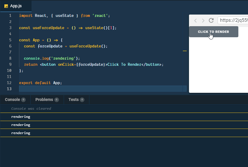 | return <button onClick={forceUpdate}>Click To Render</button>; | |