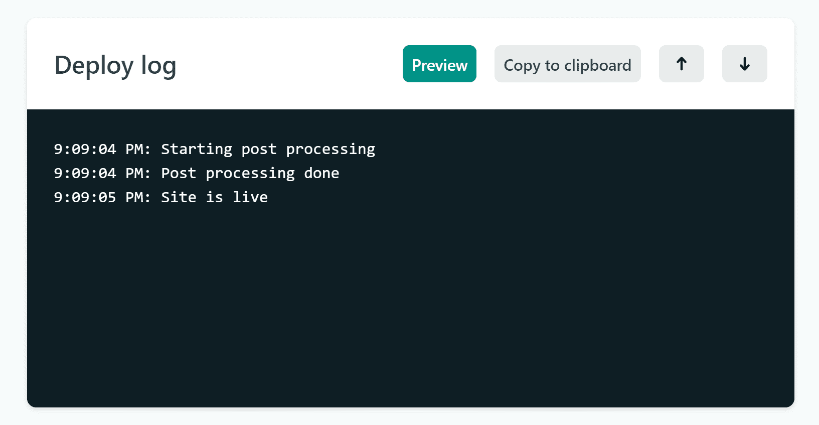 Now the Netlify log shows that it only took 1 second to deploy.