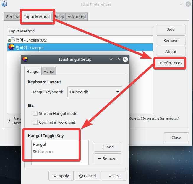 - Install ibus-hangul