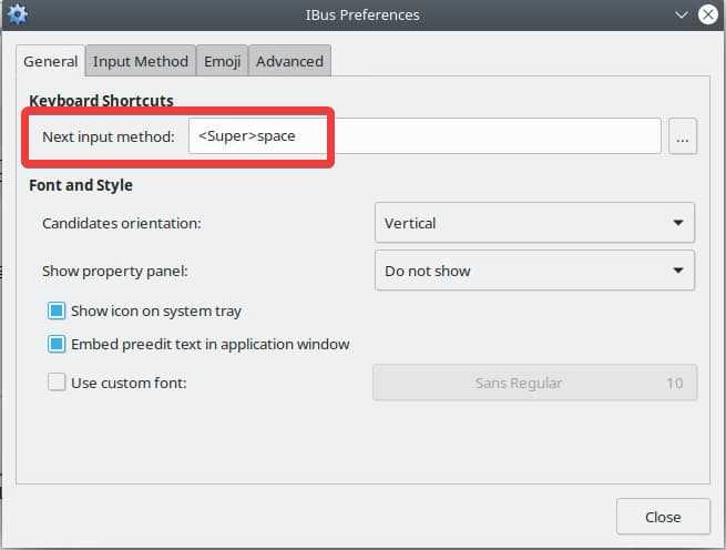 - Configure ibus