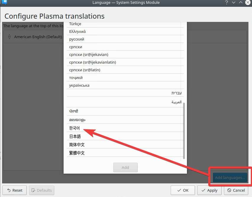 - Select Korean (한국어) & click on "Add" button