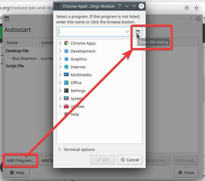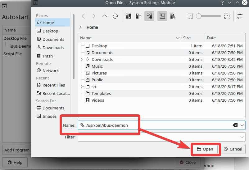 /usr/bin/ibus-daemon& click "Open" button